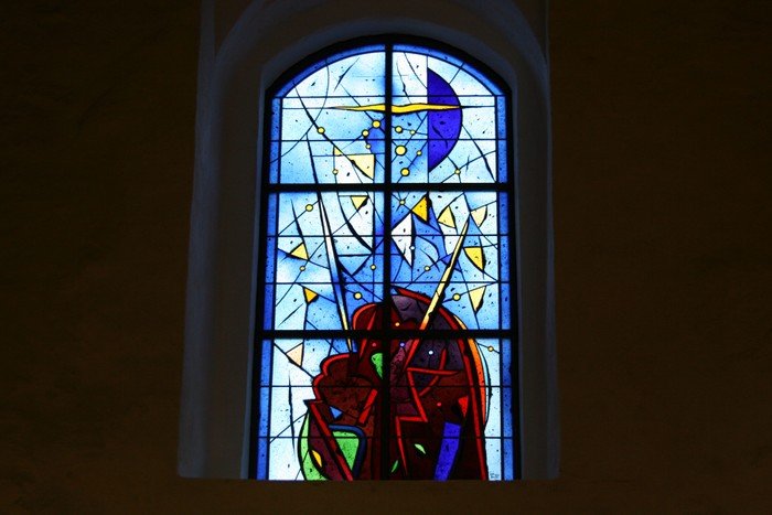 Im Altarraum wurde das Ostfenster, das im Laufe der Jahrhunderte verschlossen worden war, bei der Sanierung der Jahre 2000/2001 geöffnet und mit einem Buntglasfenster des Isländischen Künstlers Leifur Breidfjord verglast. Derselbe Künstler hat auch einen Entwurf für das Nord- und das Südfenster angefertigt. Beide Fenster wurden bereits gefertigt, das Nordfenster "Die Wachen am Grab" wurde eingebaut. Der Einbau des Südfensters "Ostermorgen" steht aus, zuvor muss das Mauerwerk statisch gesichert werden.